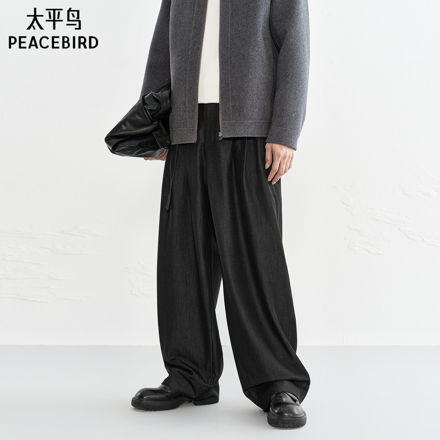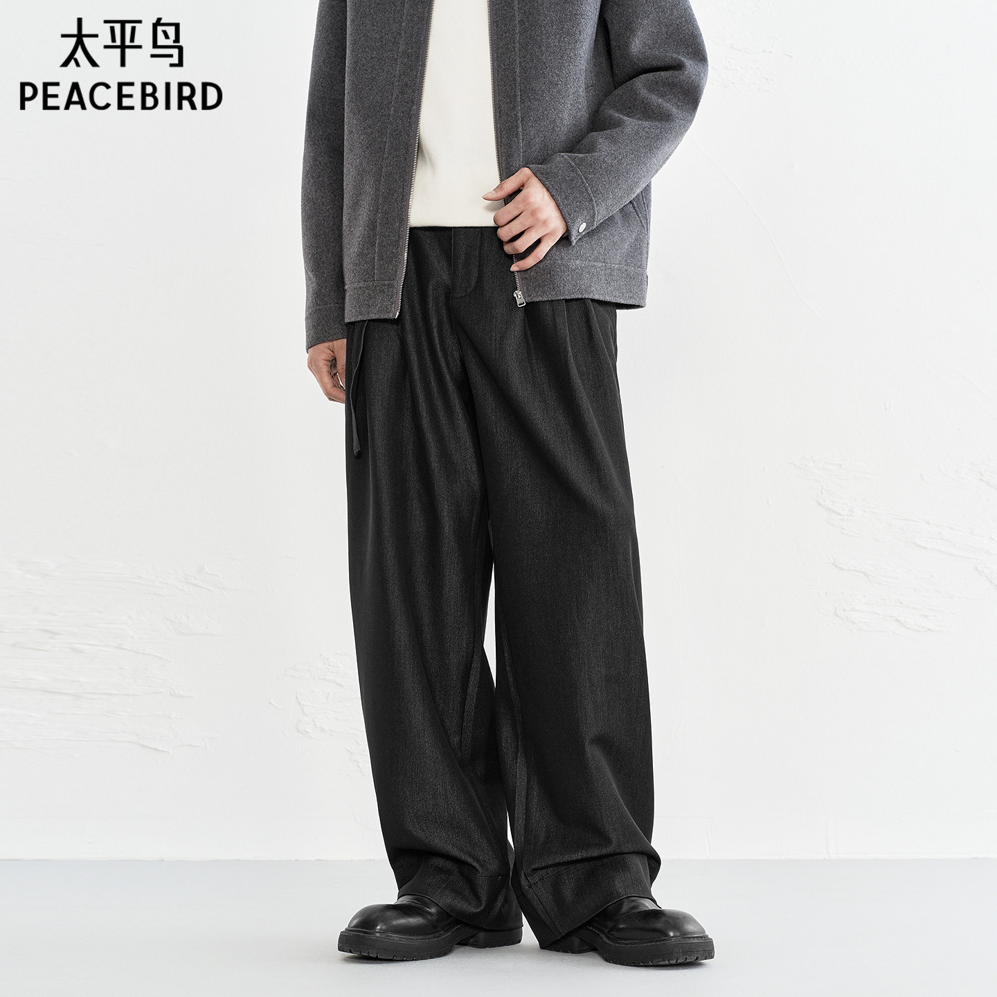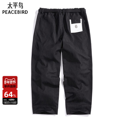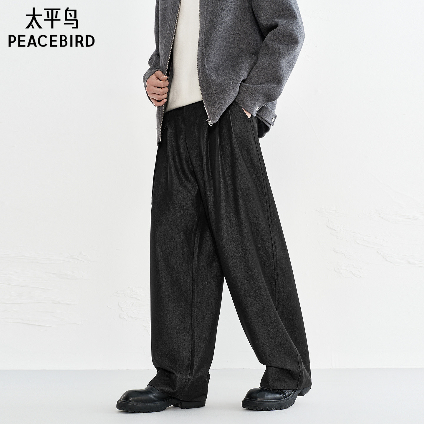 太平鸟男装 黑色休闲裤男秋季宽松直筒阔版可调节腰牛仔裤男