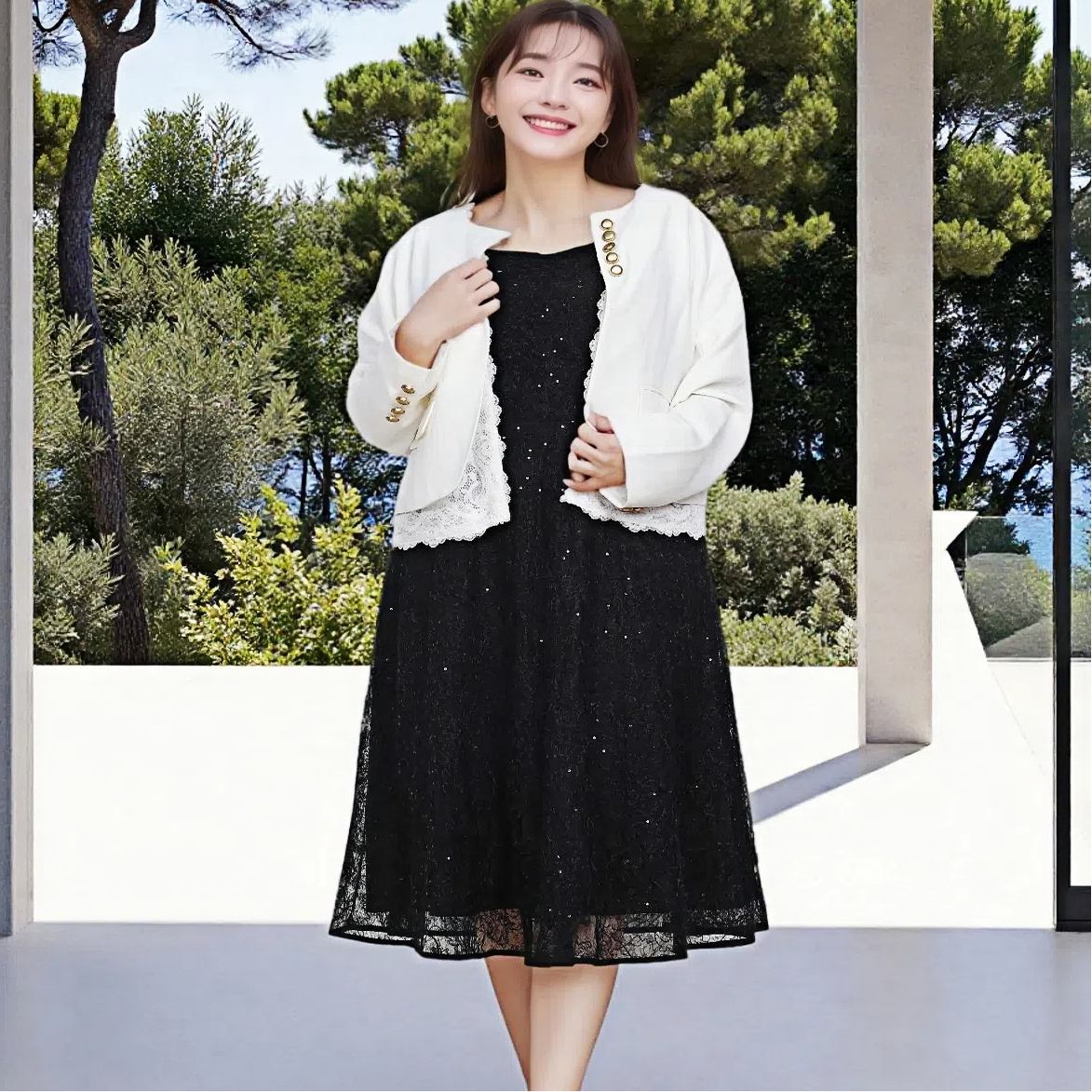 大码女装百搭减龄秋季白色上衣胖mm新款轻甜蕾丝拼接小西装短外套