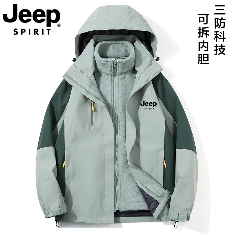 吉普2025新款户外三合一冲锋上衣女防风防水冬季加绒加厚男士外套