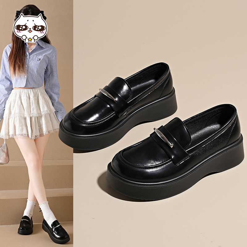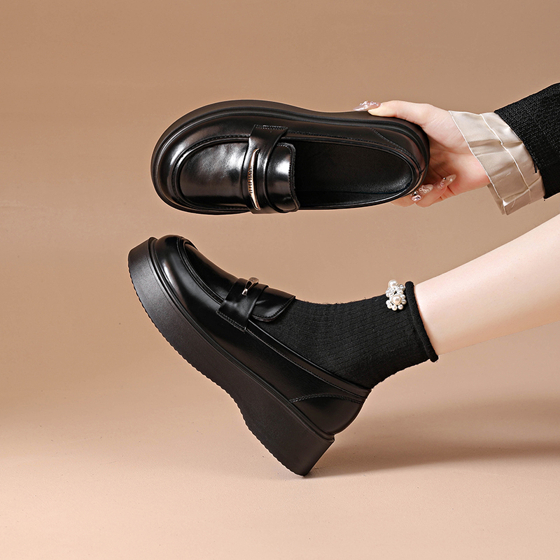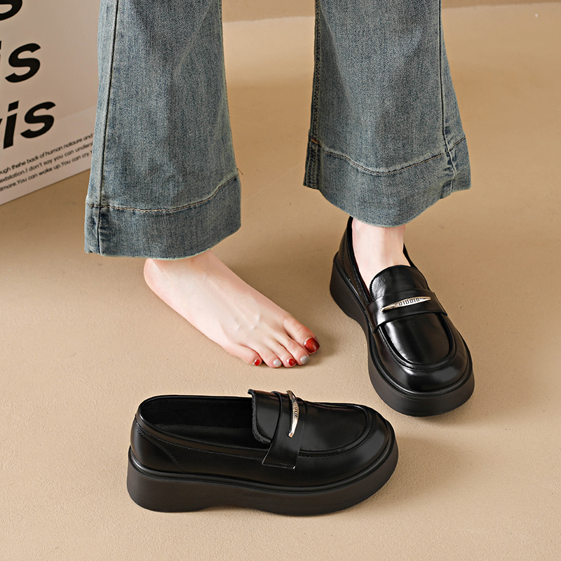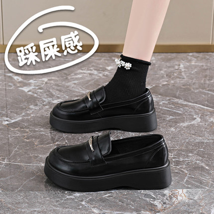 真皮乐福鞋女2025新款春秋厚底黑色单鞋不累脚通勤上班小皮鞋懒人
