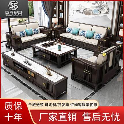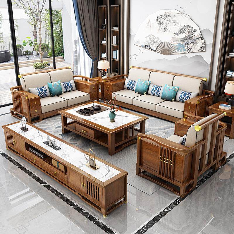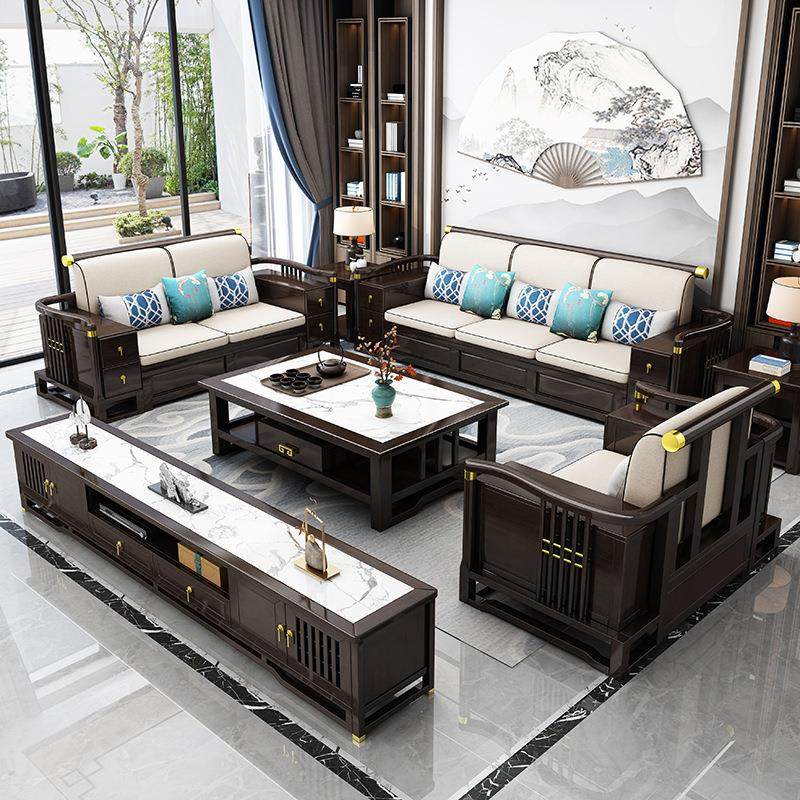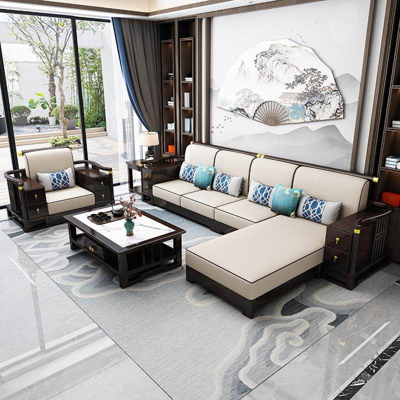 新中式实木沙发组合布艺沙发带转角贵妃客厅家具小户型别墅罗汉床
