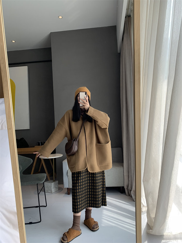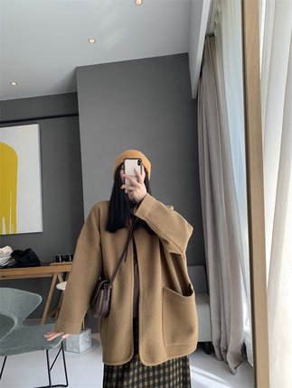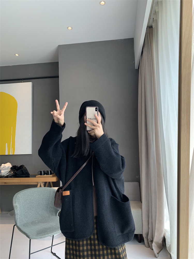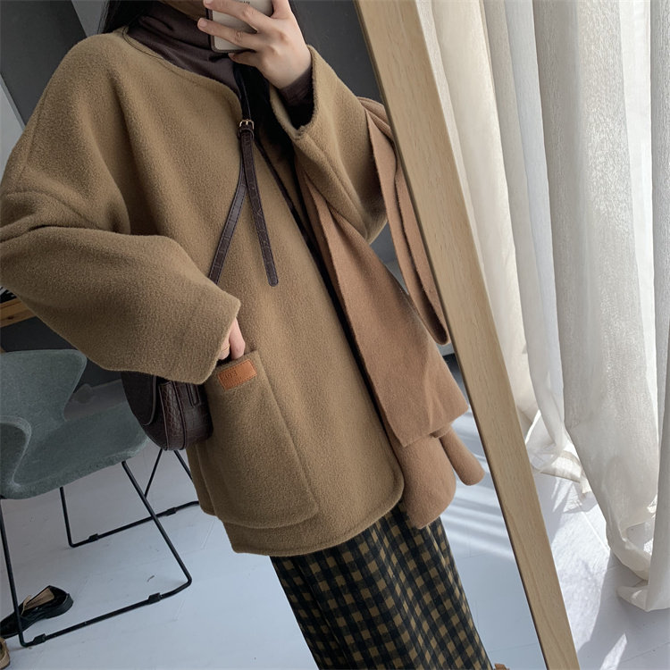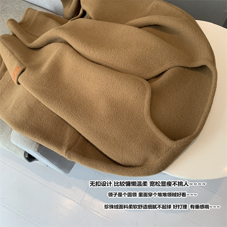 圆领无扣珍珠绒针织大衣开衫外套女秋冬韩版毛衣女款2023新款外穿