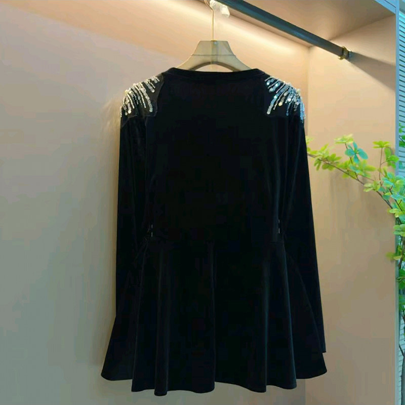 时尚长袖重工钉珠上衣大码女装设计感亮片大花衬衫新款收腰小衫潮