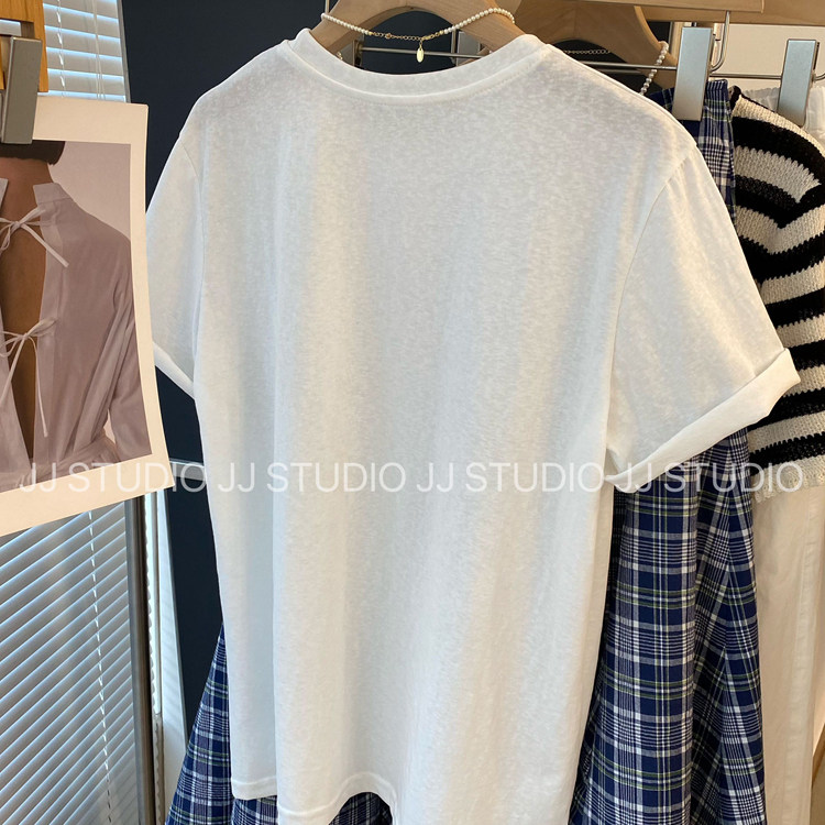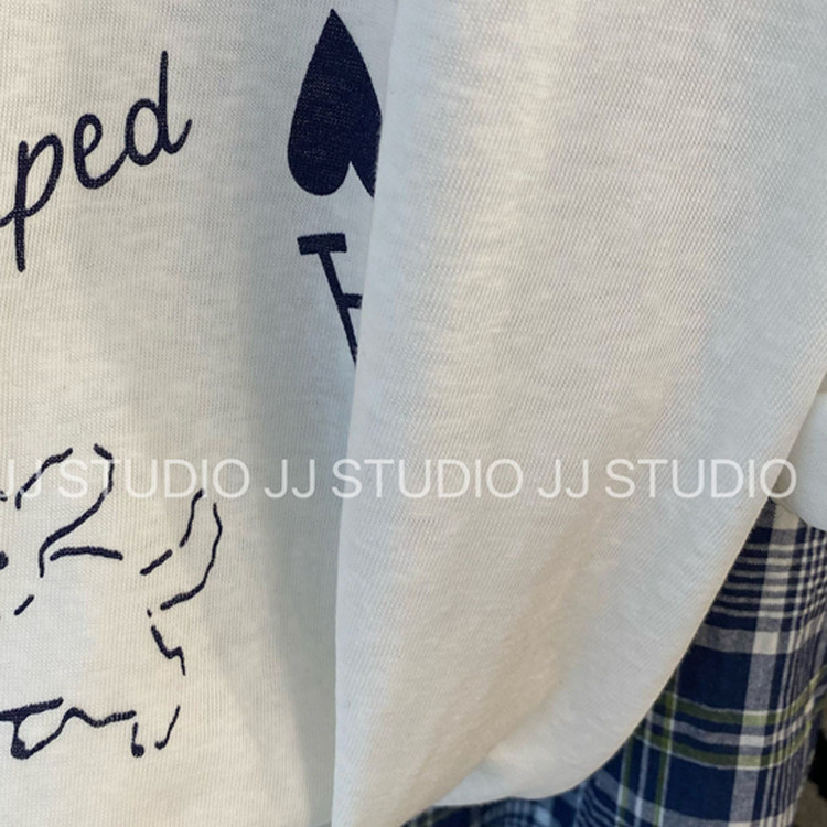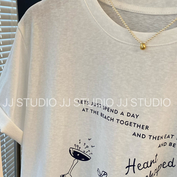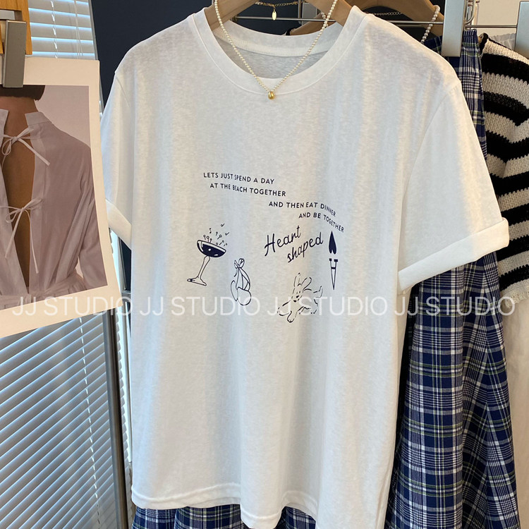 舒适雪花棉 韩国东大门简约卡通字母印花宽松白色短袖T恤女夏半袖
