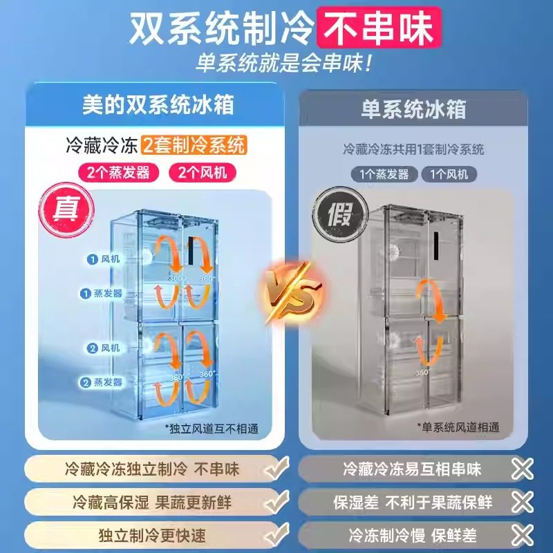 【双系统】美的十字双开531冰箱四门大容量一级换新补贴家用嵌入
