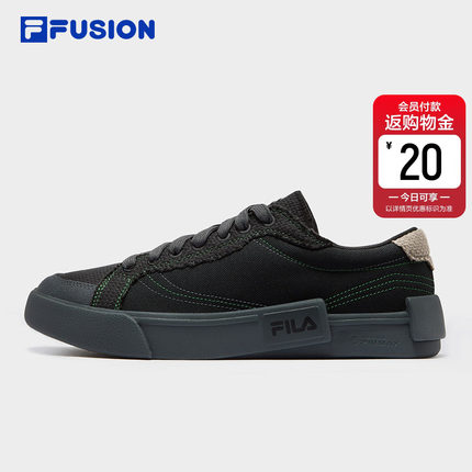 FILA FUSION斐乐潮牌帆布鞋男鞋轻便休闲鞋拼接时尚黑色板鞋男