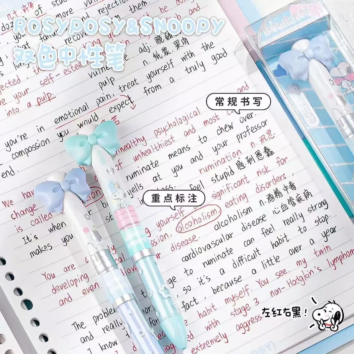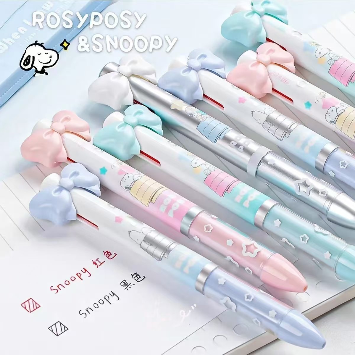 RosyPosy史努比双色中性笔按动0.5黑笔多色合一多功能黑笔红笔