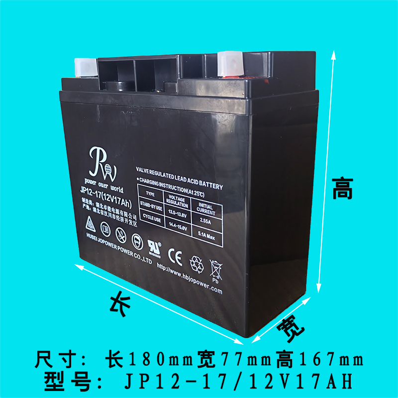 湖北卓能PW蓄电池JP12-17 12V17AH赋安消防报警主机EPS应急电源用