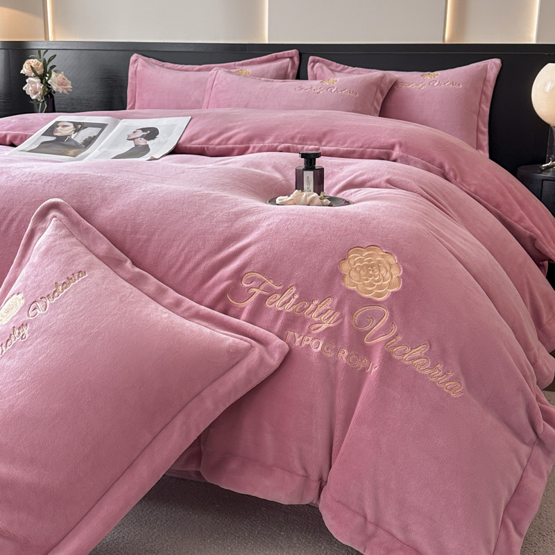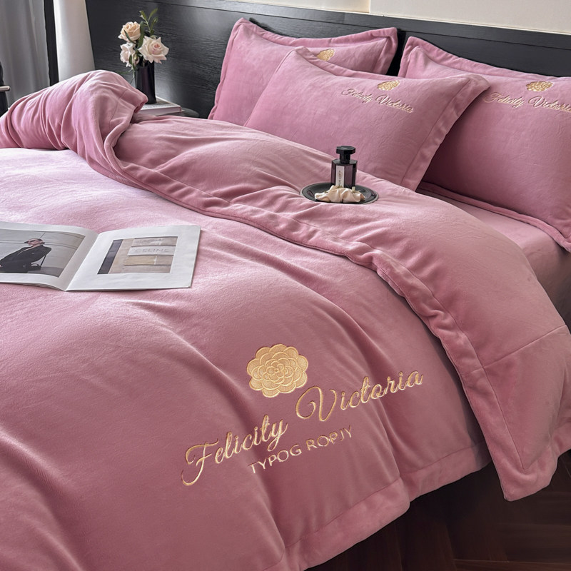 冬季加厚牛奶绒床上四件套刺绣2025双面婴儿绒珊瑚绒被套床单保暖