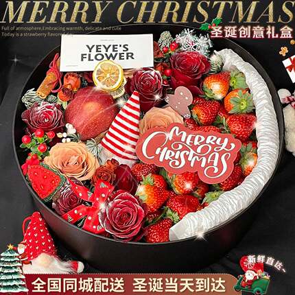 圣诞节苹果玫瑰礼盒花束平安夜送女友鲜花速递同城北京上海店配送