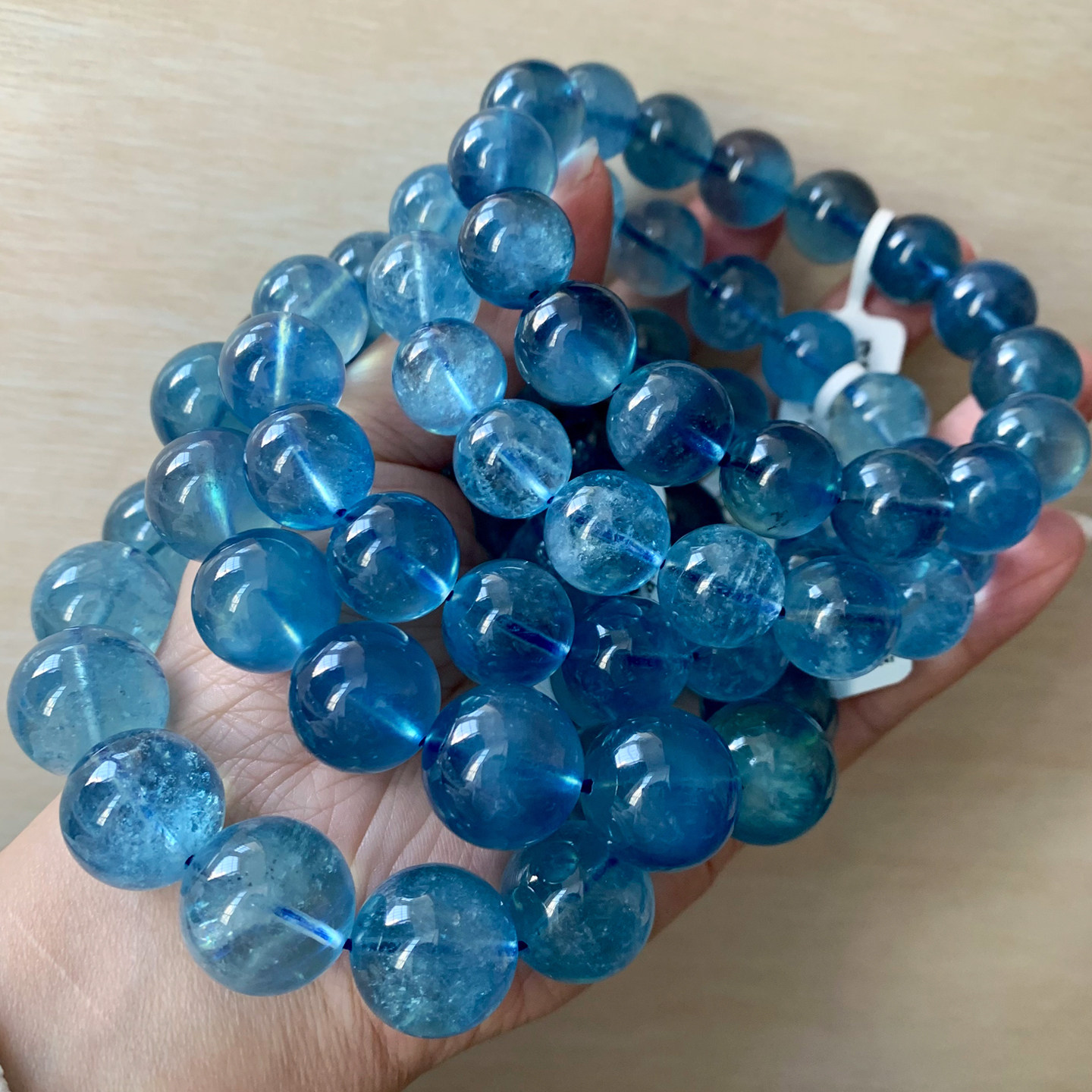 天然冰透星光魔鬼蓝海蓝宝手串蓝水晶宝石手链单圈一物一图男女款