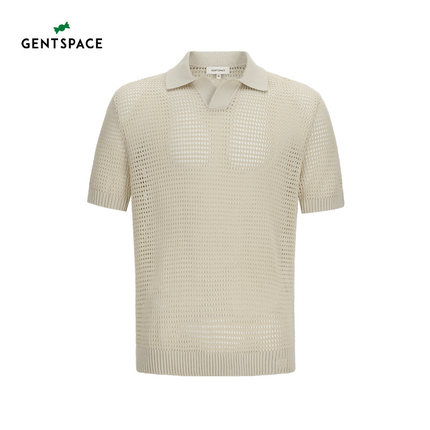 【商场同款】GENTSPACE 夏季米黄编织感针织短袖polo衫男款