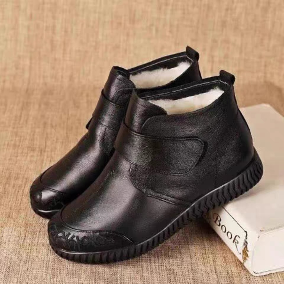 品牌真皮老人棉鞋女秋冬新款雪地靴软底皮鞋中老年奶奶防滑妈妈鞋
