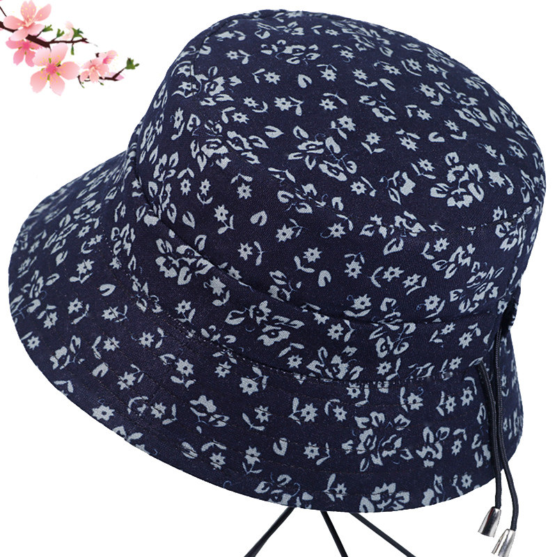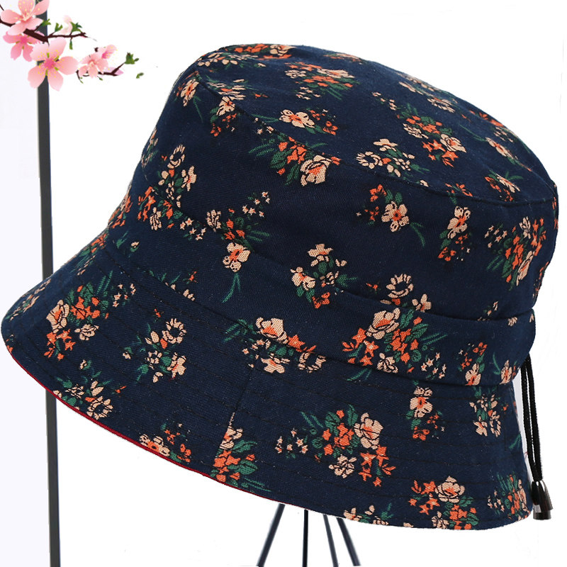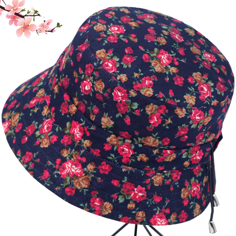 帽子女士春秋季韩版百搭田园碎花盆帽中老年人渔夫帽遮阳帽太阳帽