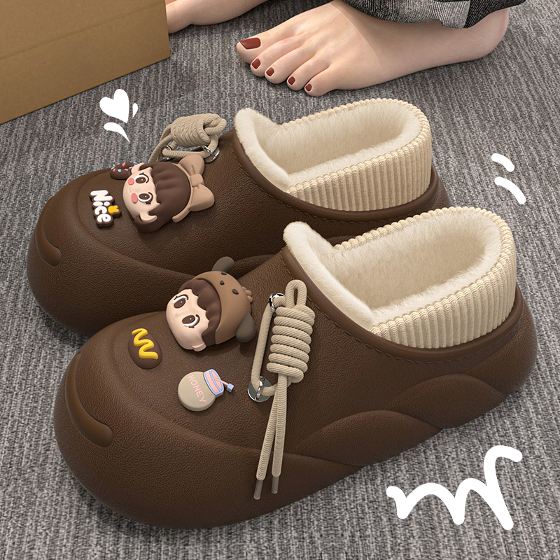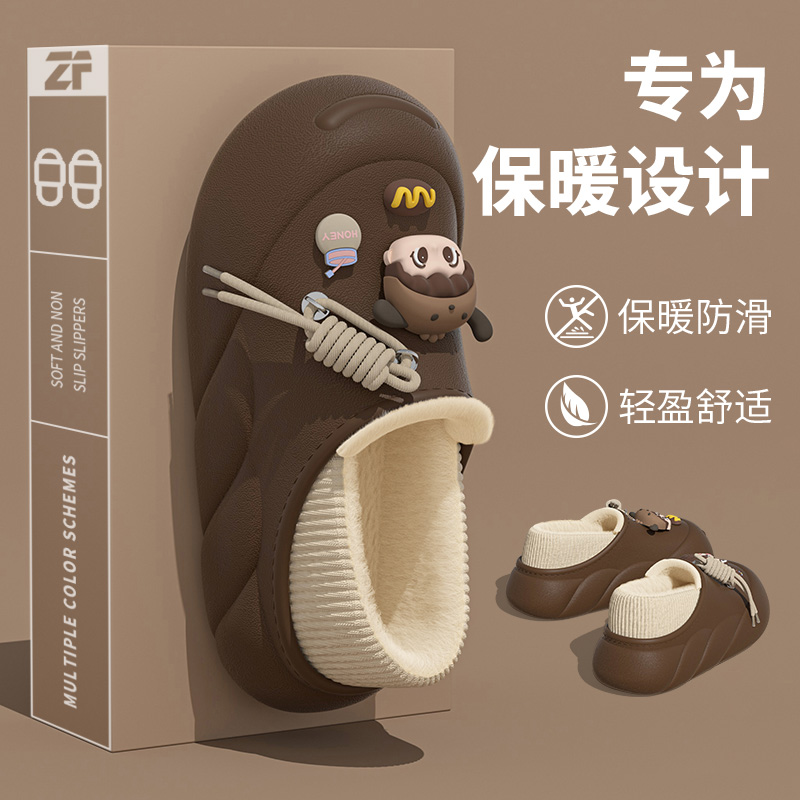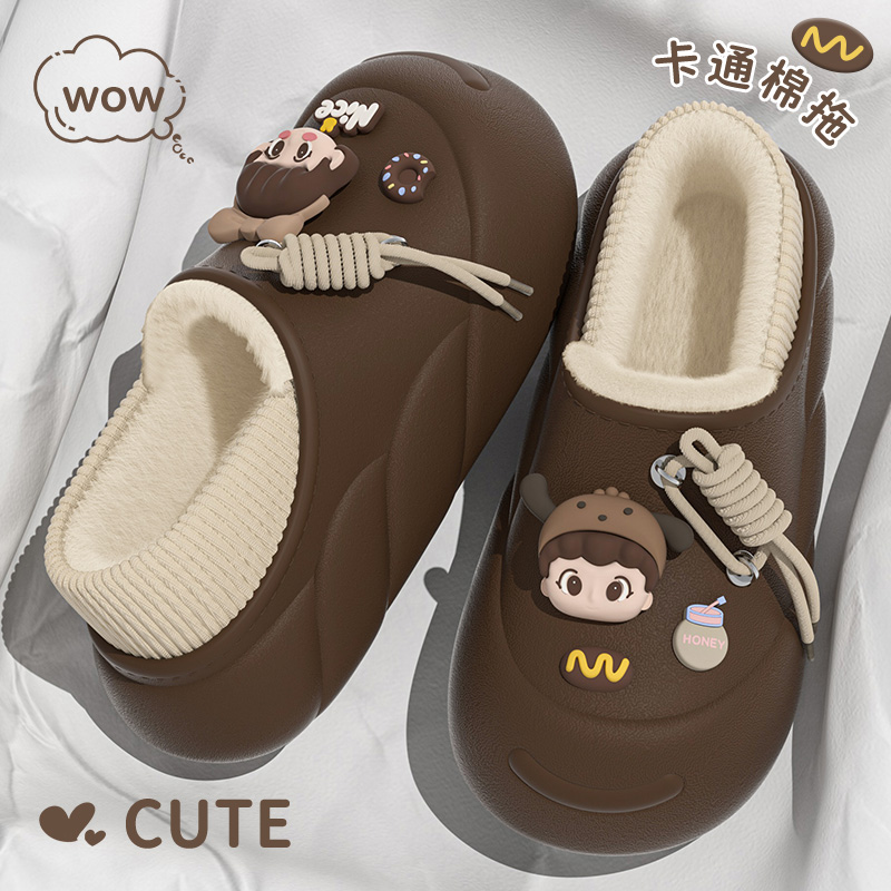 甜美棉拖鞋女士新款冬季外穿包跟保暖防水厚底加绒DIY卡通棉鞋女