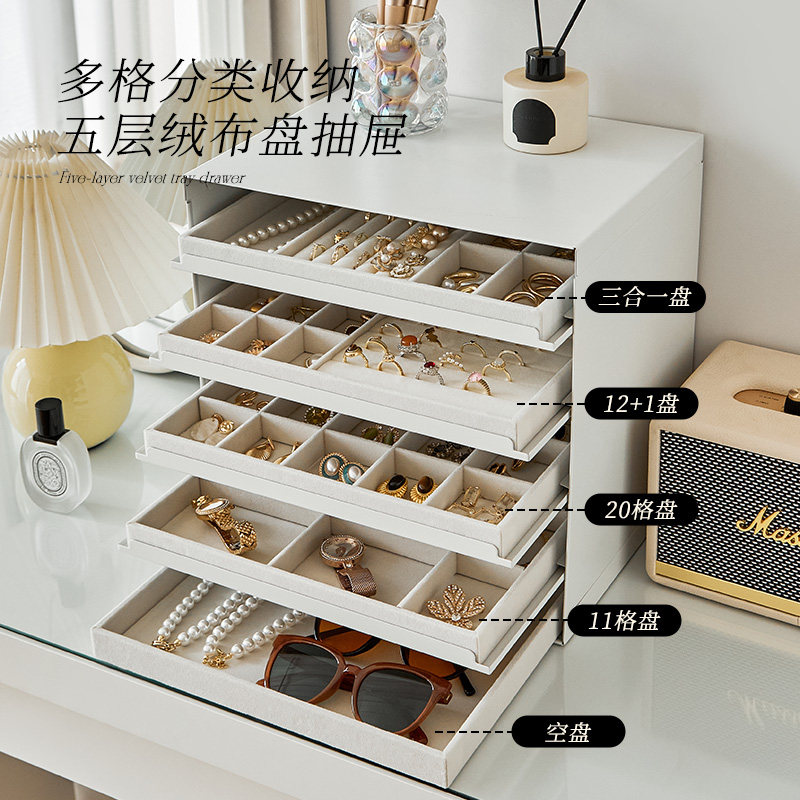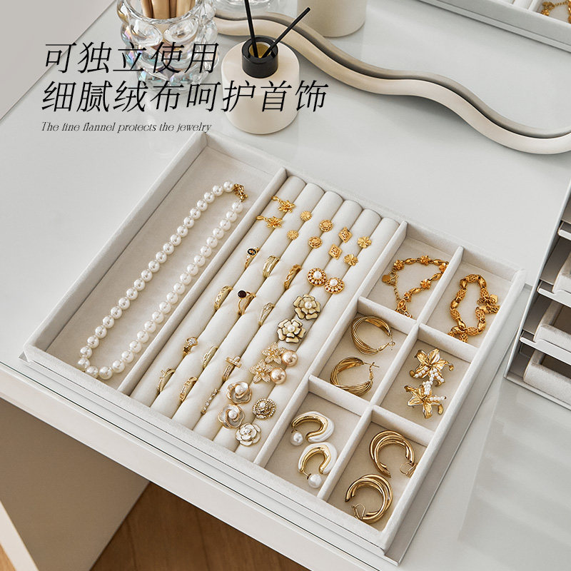 绒布托盘首饰柜桌面多层大容量高档项链戒指耳环储物化妆品收纳盒