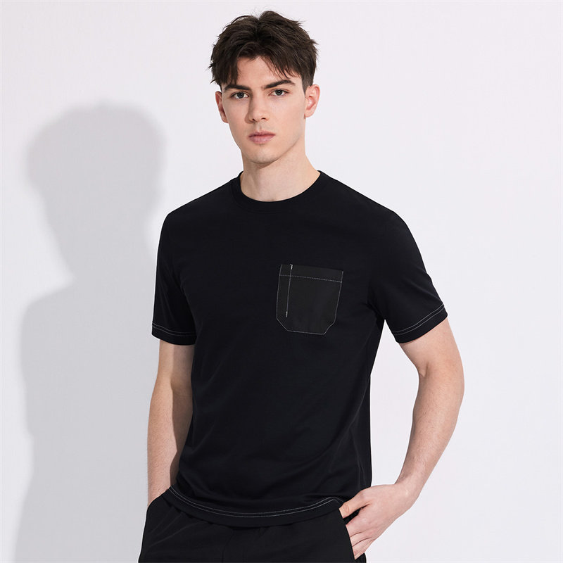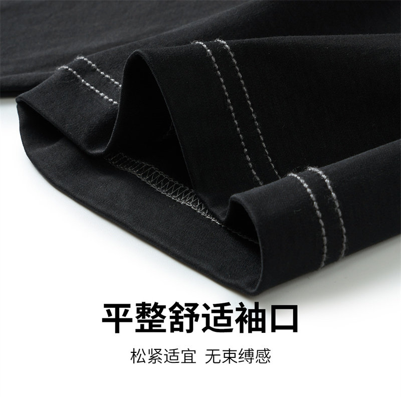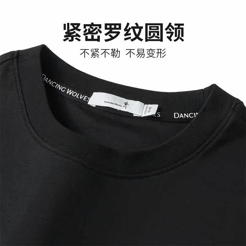 【纯棉】与狼共舞明线圆领短袖T恤男2024夏季新款吸湿透气短t半袖