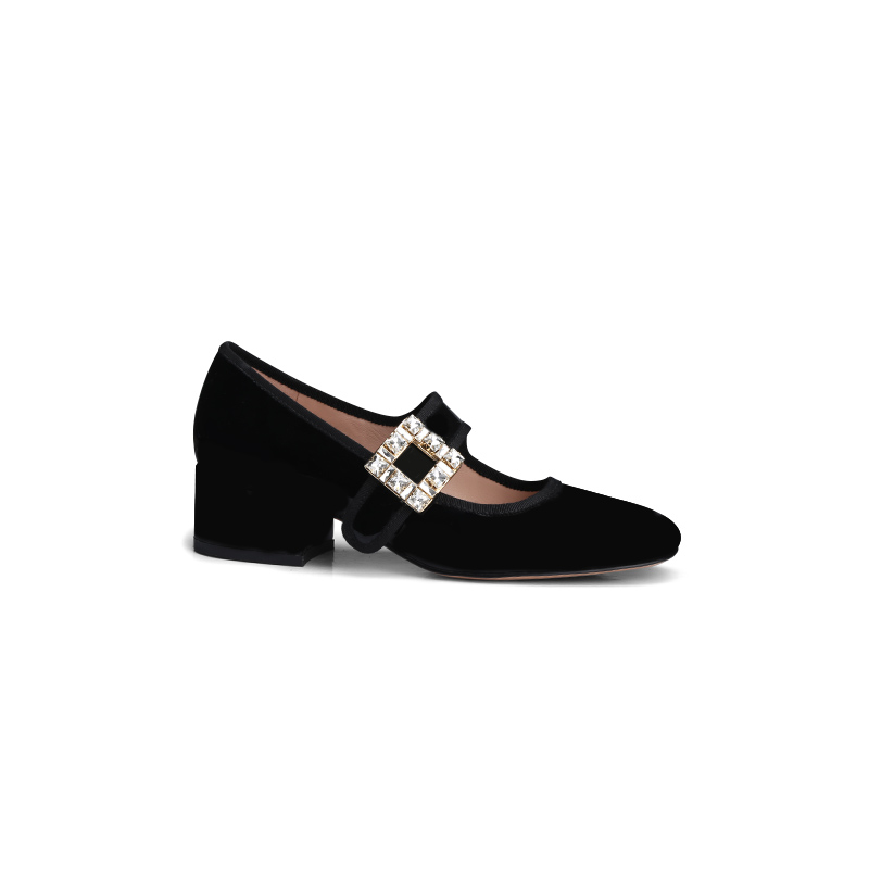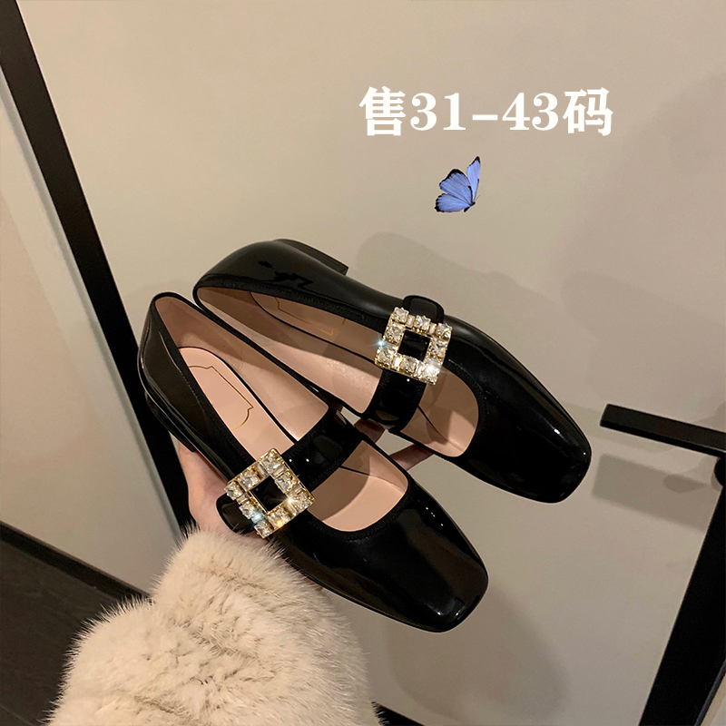 大码单鞋女41-43丝绒复古奶奶鞋气质粗跟高跟鞋小码女鞋313233春
