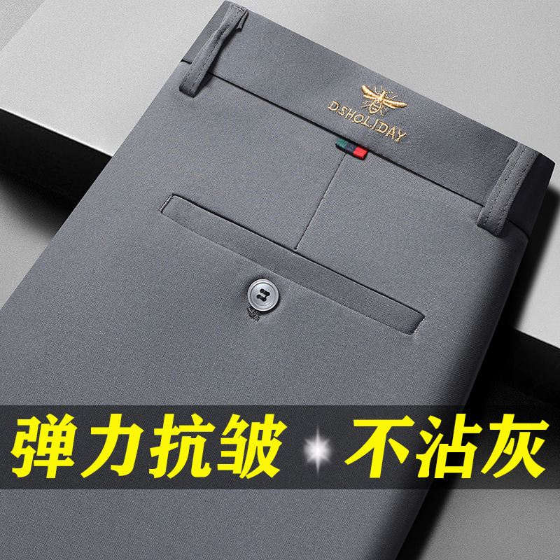 春秋加厚男士休闲裤宽松直筒西裤高弹力薄款男裤中年商务长裤子男