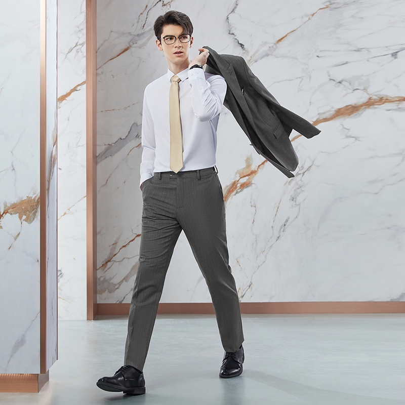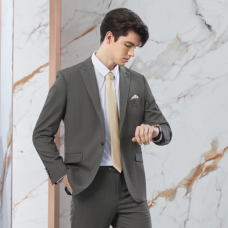 【条纹提花】柒牌西服套装男秋冬新款商务绅士戗驳领结婚礼服