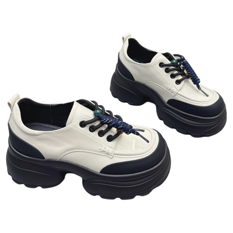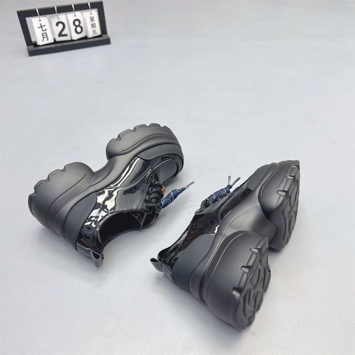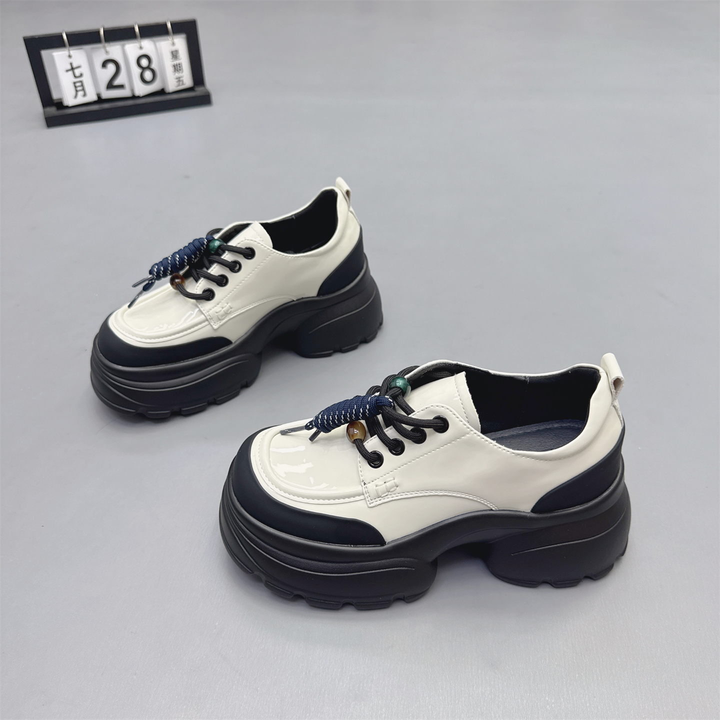 真皮女鞋2025秋新款厚底增高6CM乐福鞋圆头系带松糕鞋英伦小皮鞋