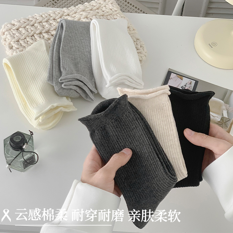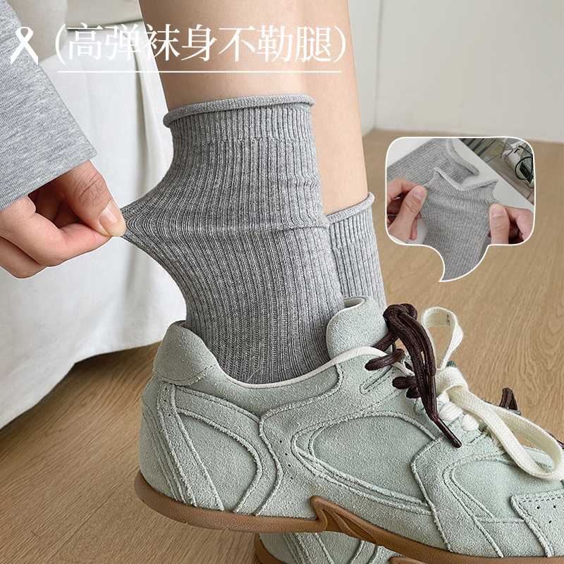 春夏薄棉卷边松口堆堆袜