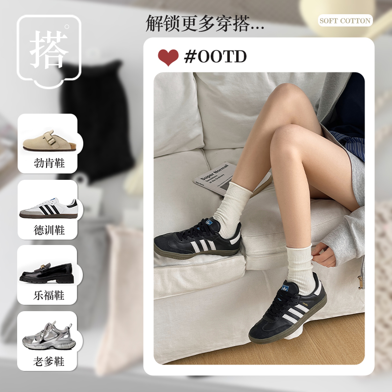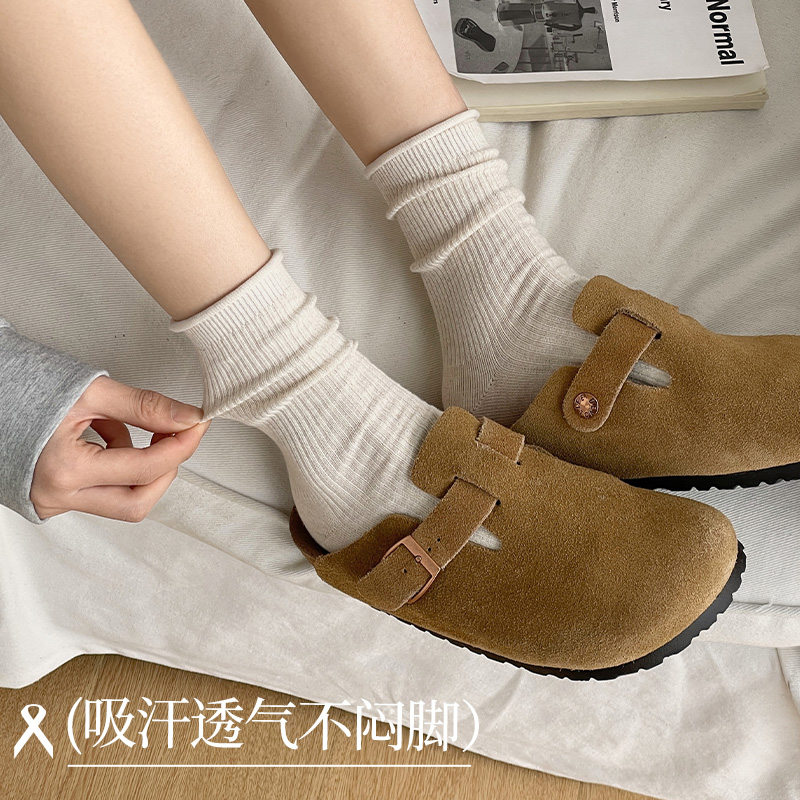 白色堆堆袜子女春夏季薄款棉底中筒袜卷边松口长袜夏天外穿韩版潮