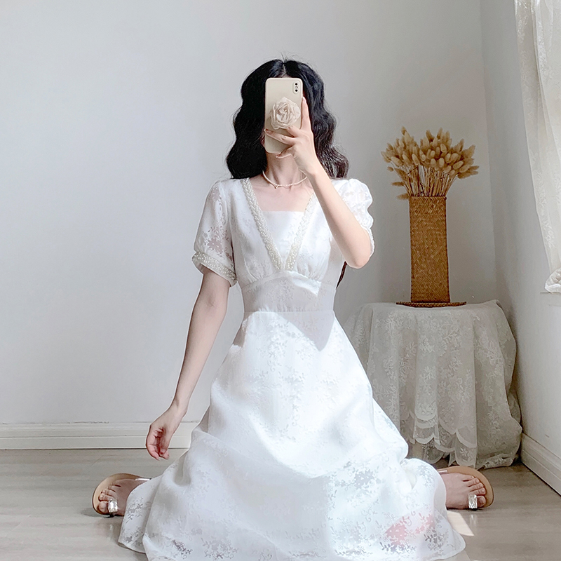 夏季2024新款女装裙子法式收腰显瘦初恋温柔风甜美气质减龄连衣裙