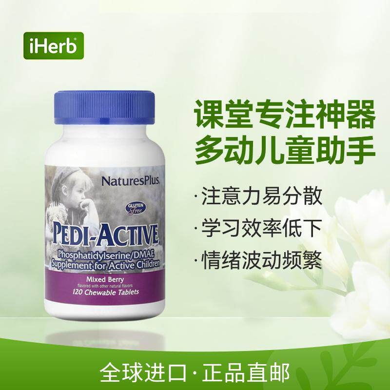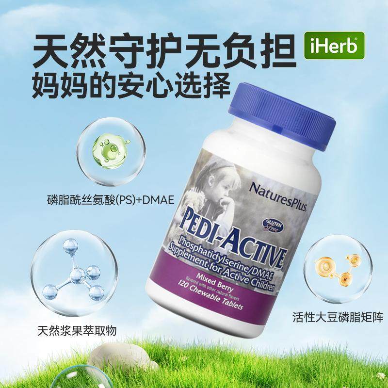 NaturesPlus自然加活跃儿童PS磷脂酰丝氨酸DMAE补充剂神经营养多