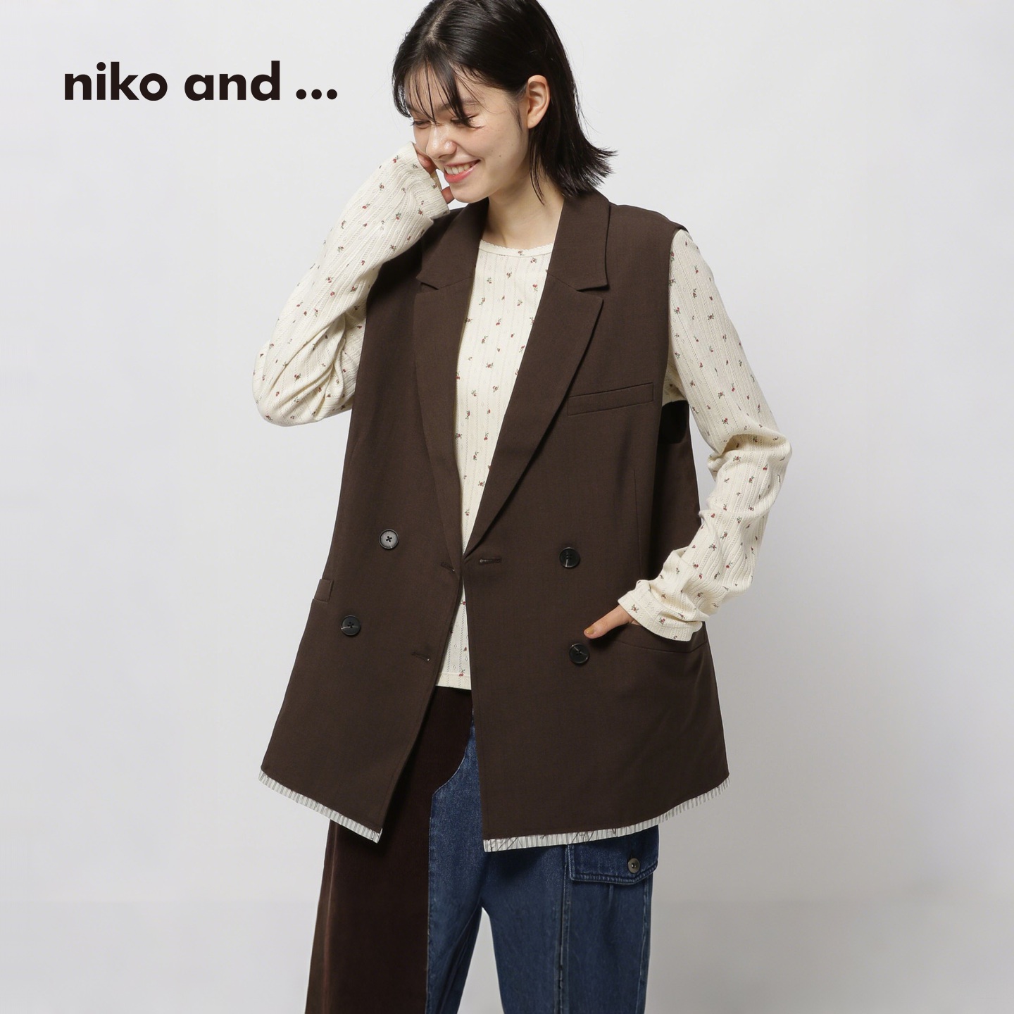 niko and ...马甲女2025秋季新款简约通勤双排扣西服背心581384