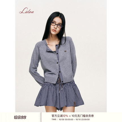 Liilou 松弛感 格子拼接圆领羊毛针织插肩袖开衫