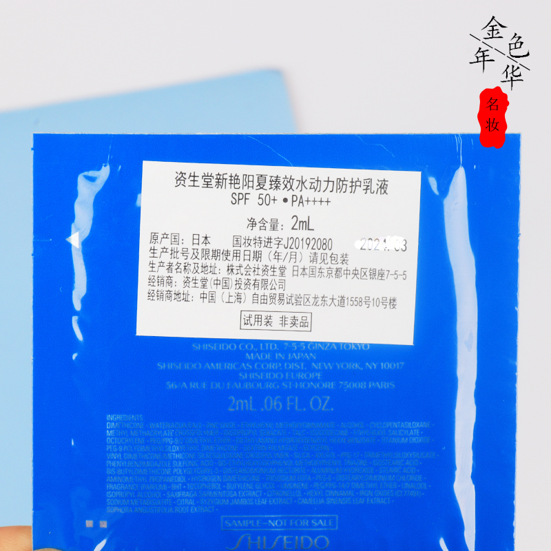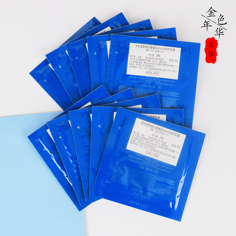 10片价 资生堂蓝胖子新艳阳夏臻效水动力防晒2ml小样保湿清爽隔离