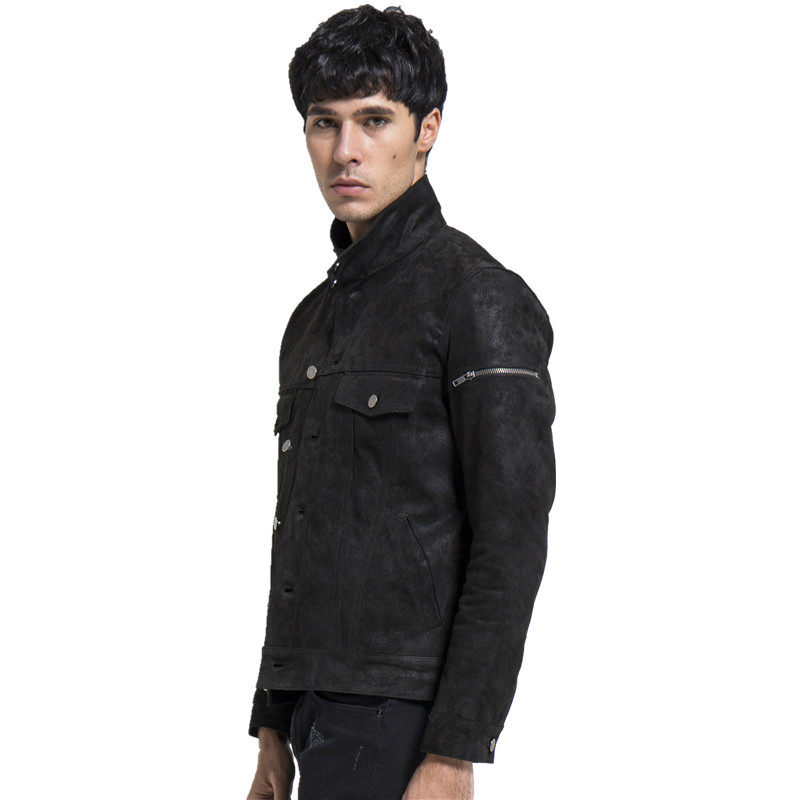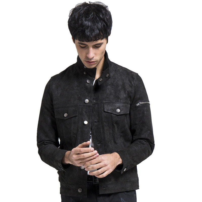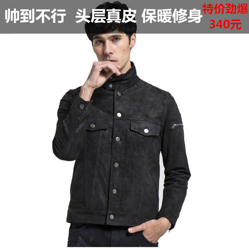 男士夹克机车服修身时尚立领薄棉磨砂反绒皮真皮皮衣男款短款潮
