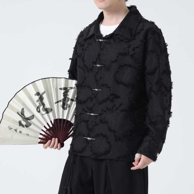 新中式中国风长袖衬衫夹克男士春季高级感粉色唐装中山装宽松外套