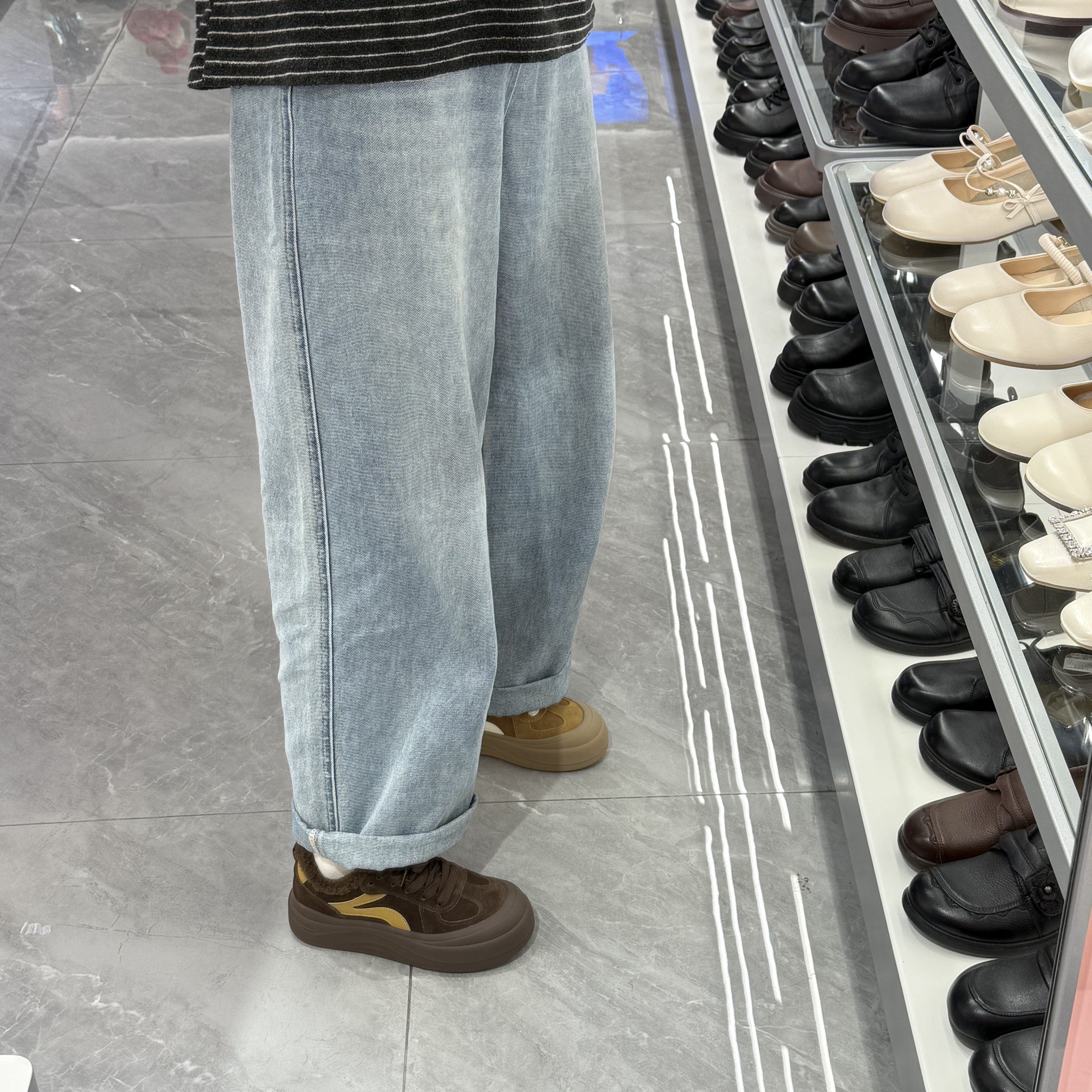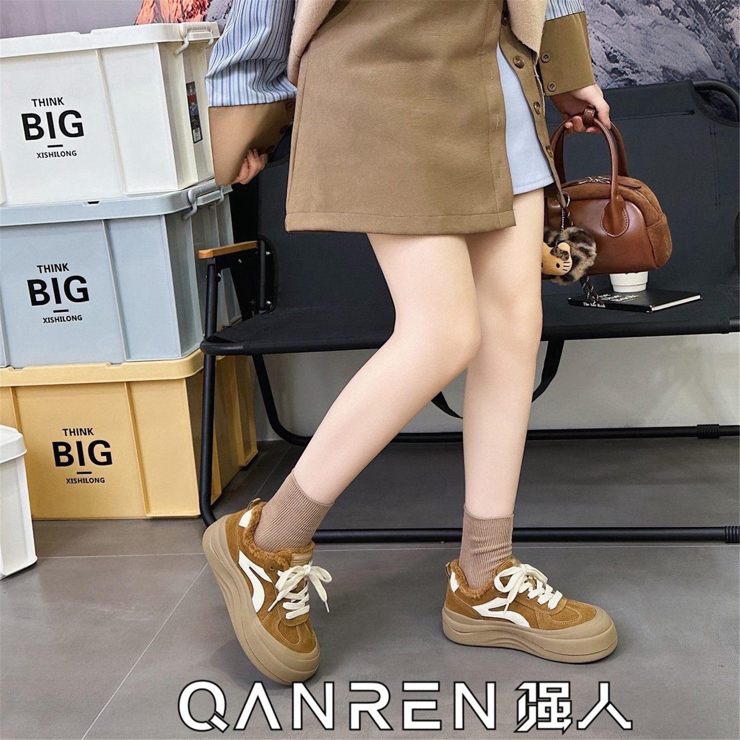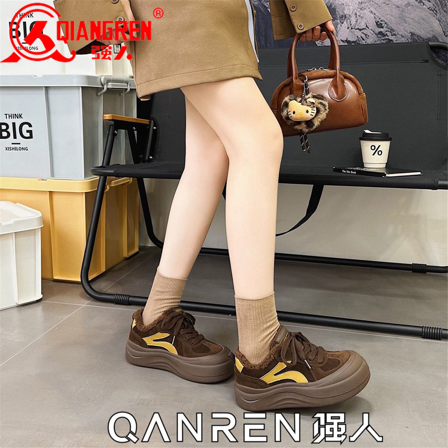 3515强人女鞋德训鞋加绒保暖冬季2025新款平底厚底时尚休闲鞋板鞋