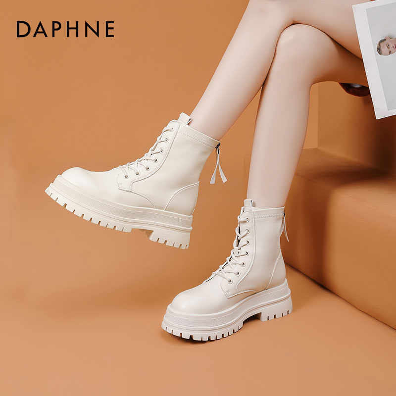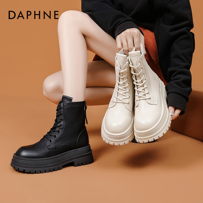达芙妮马丁靴女2025新款靴子女鞋春季英伦风黑色增高厚底短靴女款