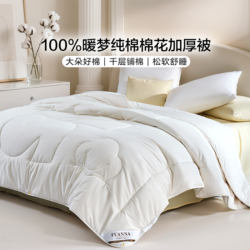 富安娜家纺A类全棉棉花被100%新疆棉四季被芯被子保暖冬被床品