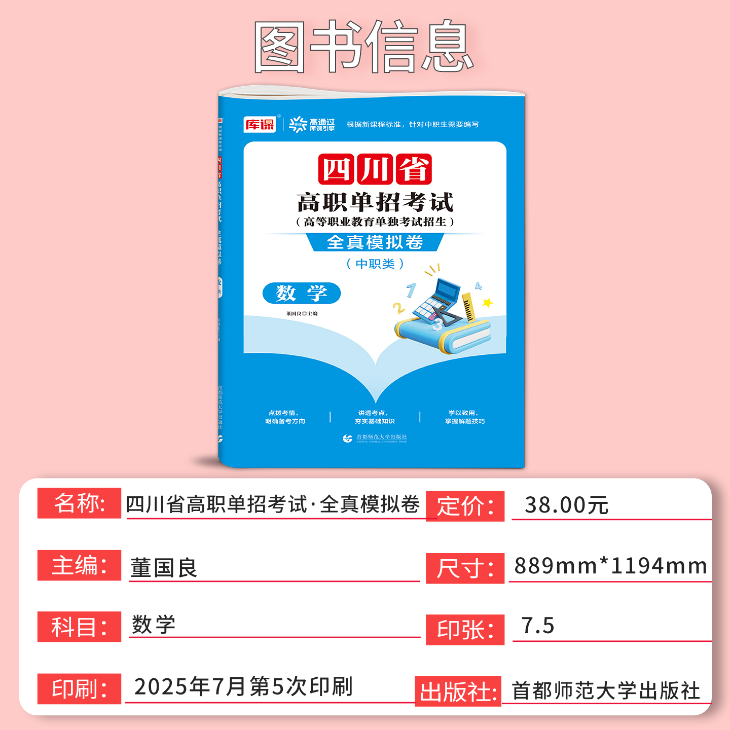 库课2026年四川省高职单招考试数学冲刺进阶真题模拟试卷专用教材四川中职生高中职校单独招生考试升大专复习资料书春季高考辅导书