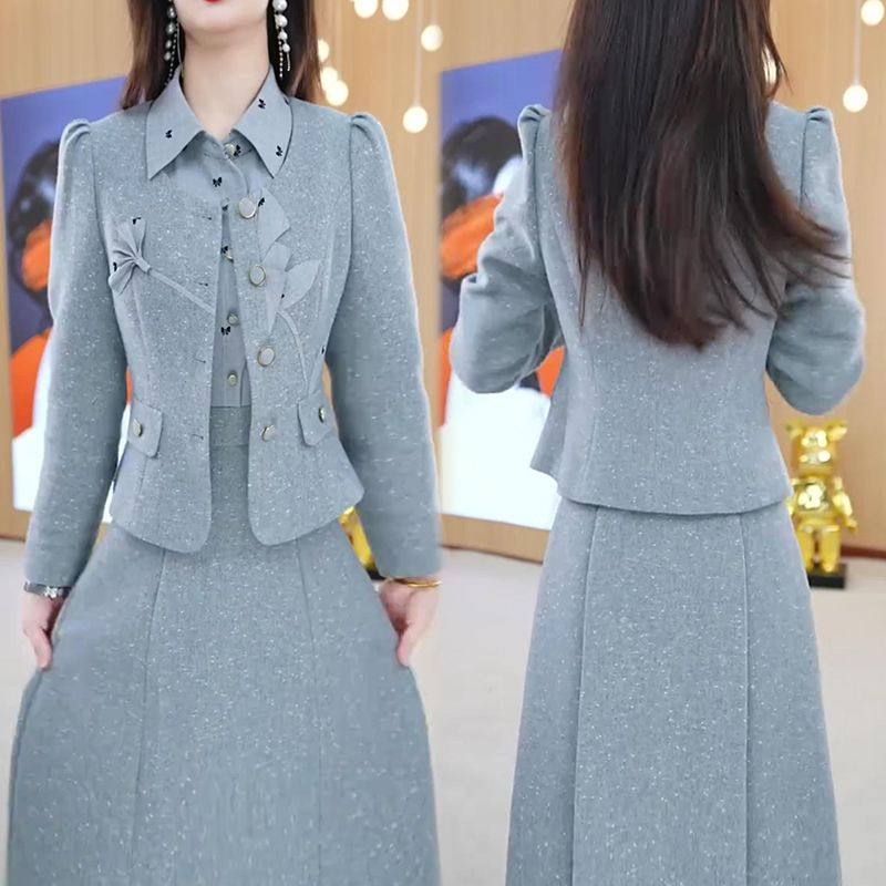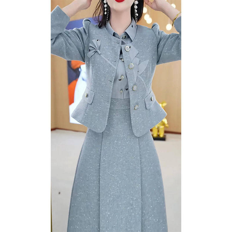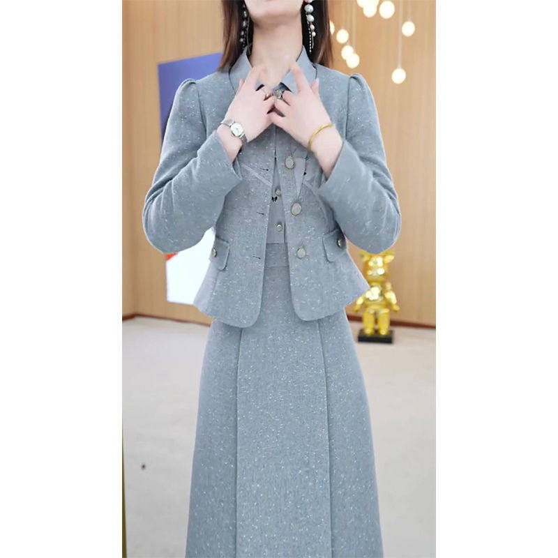 2025秋季新款时尚套装女气质小香风外套POLO领拼接连衣裙两件套潮