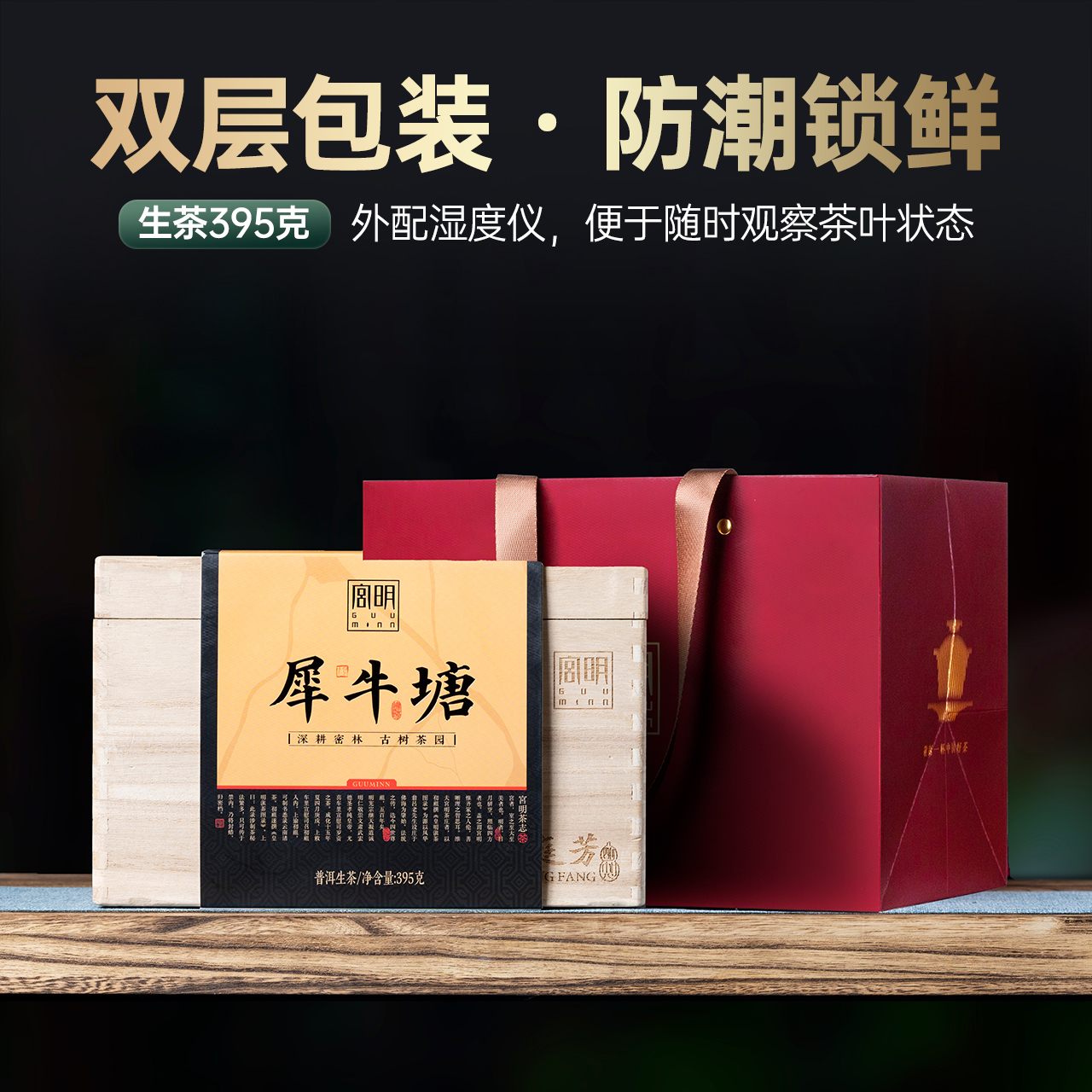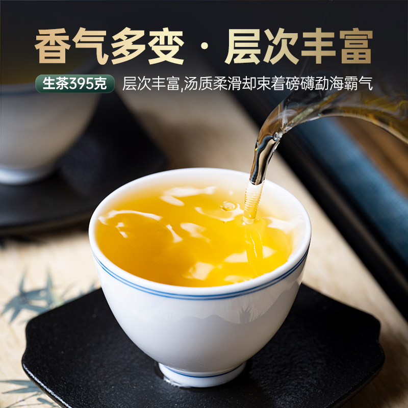 宫明茶叶 2018年云南大叶种古树普洱茶生茶满庭芳犀牛塘生散395g