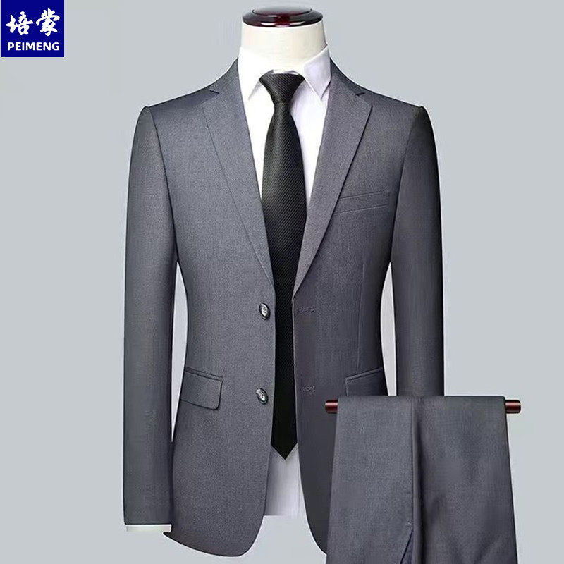 培蒙西服套装大学生男修身外套新郎结婚礼服商务职业正装小西装男
