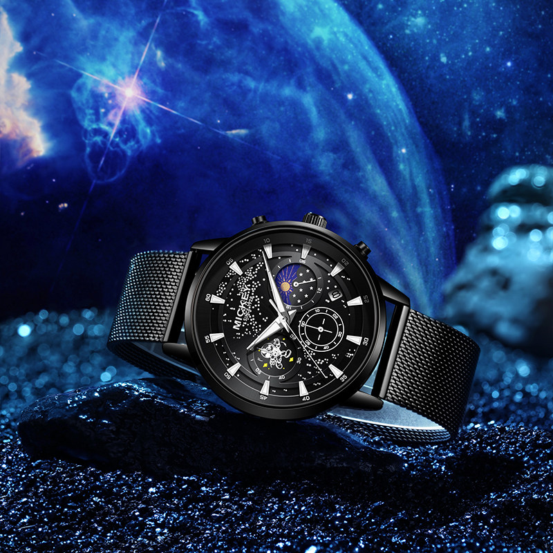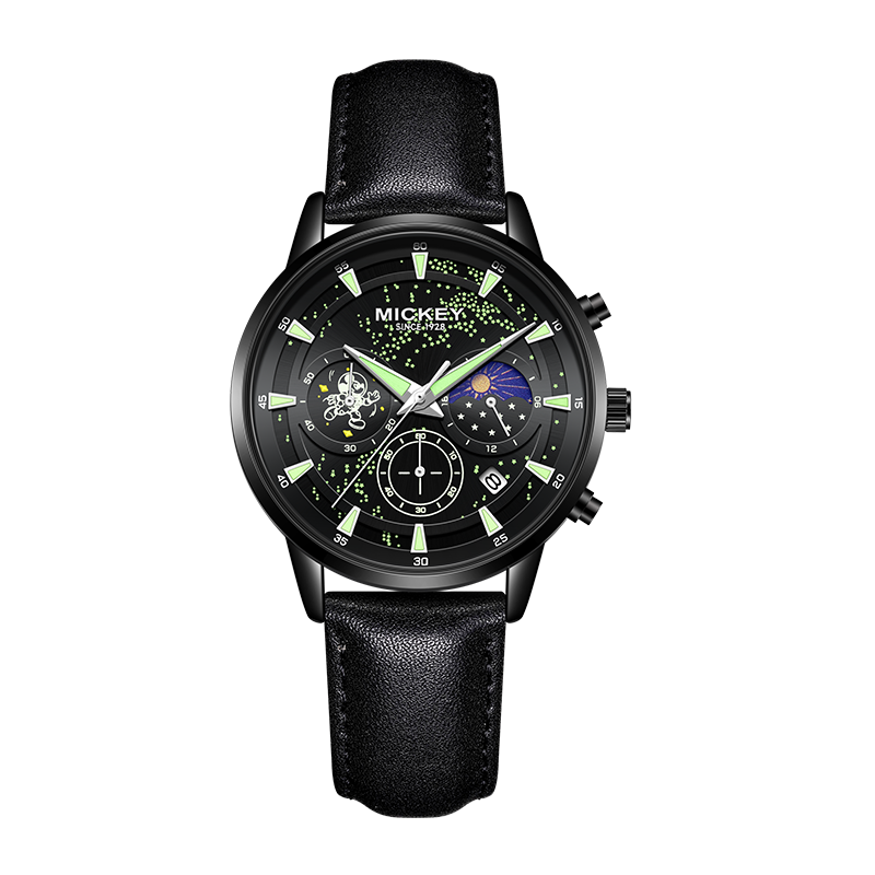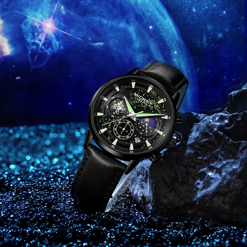 迪士尼手表男官方正品太空米奇夜空繁星夜光男生炫酷石英表礼物