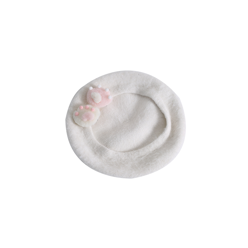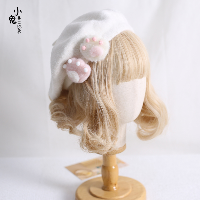 喵软萌兔毛贝雷帽洛丽塔帽子日系甜美少女猫爪蓓蕾帽lolita毛绒帽