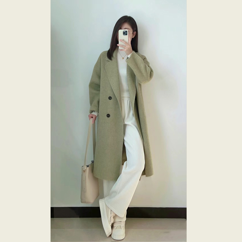 秋冬装韩系高级感赫本风显瘦呢子大衣绿色小个子毛呢外套女中长版
