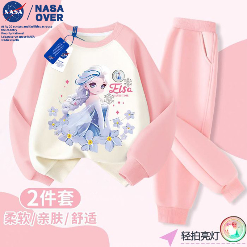 NASA爱莎公主插肩卫衣套装女童秋冬季亮灯发光加绒上衣长裤