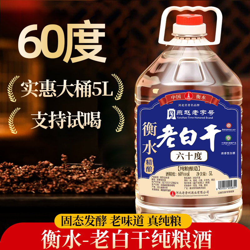衡水纯粮老白干60/67高度白酒固态高粱酒53/75桶装散酒泡酒用酒