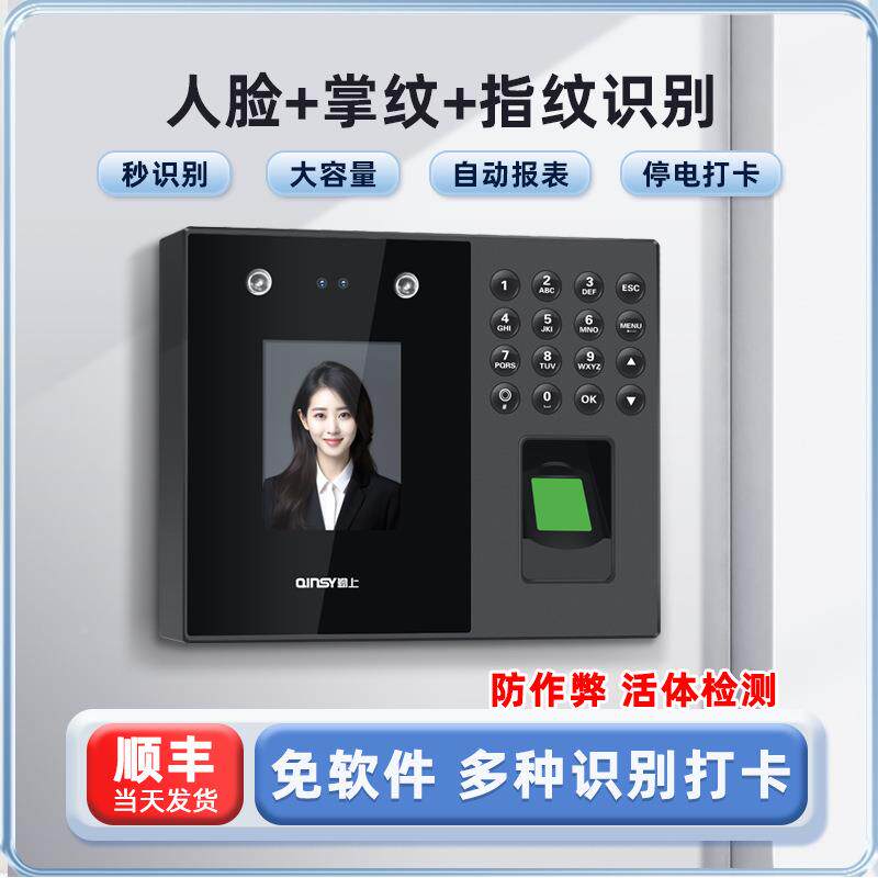 员工识上下班打卡考勤机签到打标配(送卡机人掌纹脸指纹别考打勤