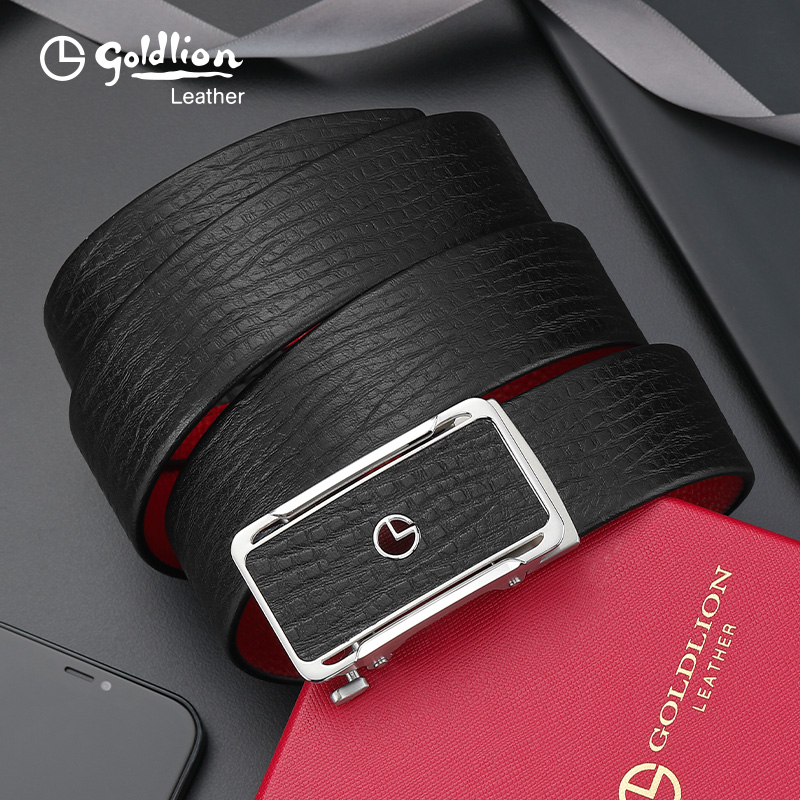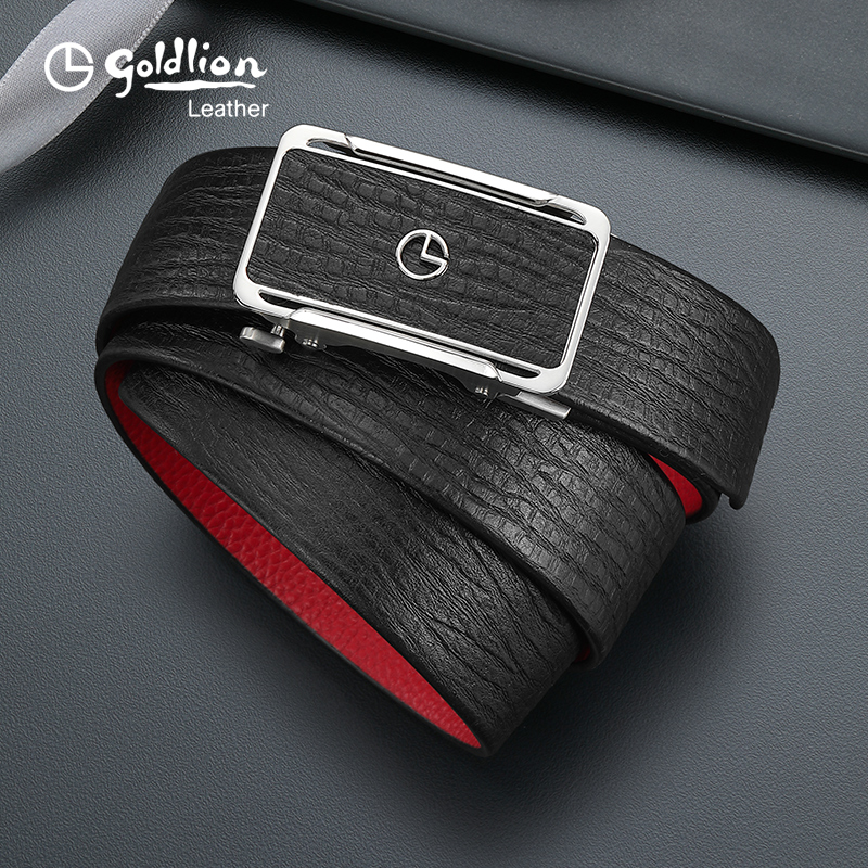 【不锈钢】金利来皮带男真皮本命年属蛇自动扣腰带鸿运年红裤带