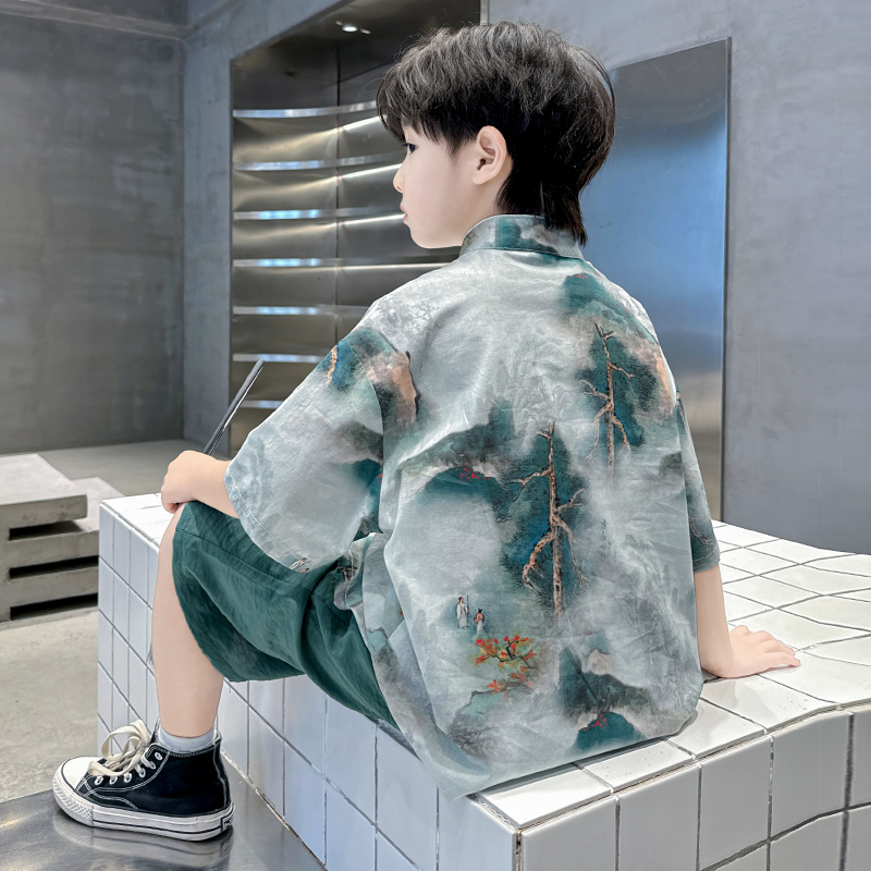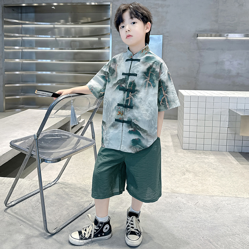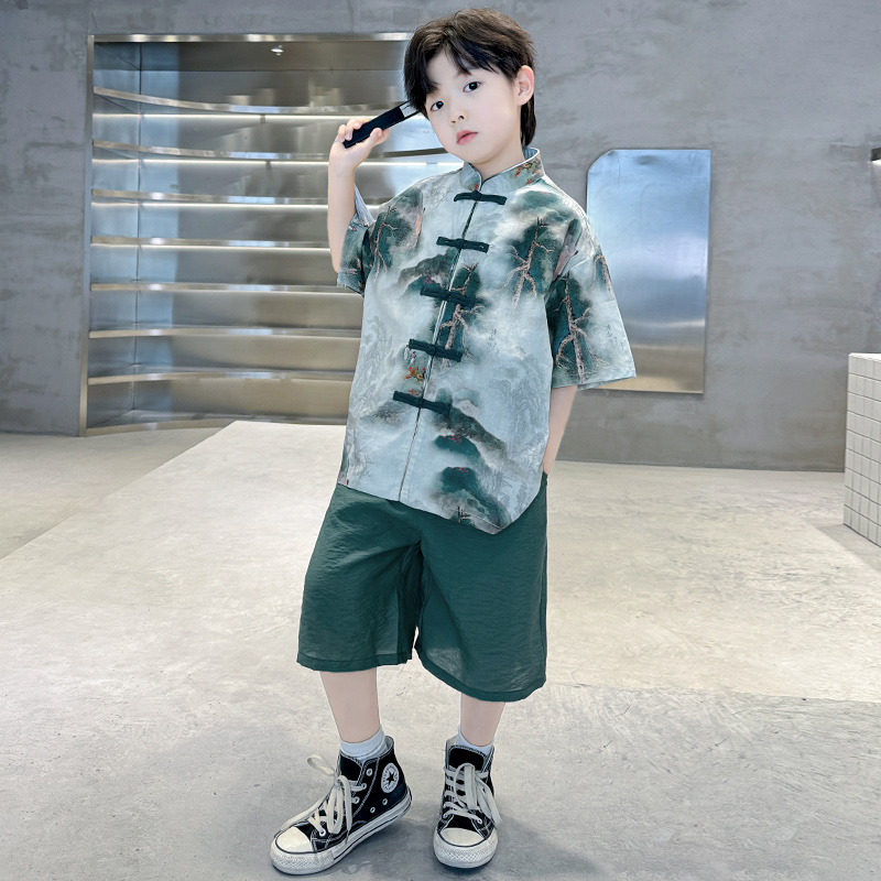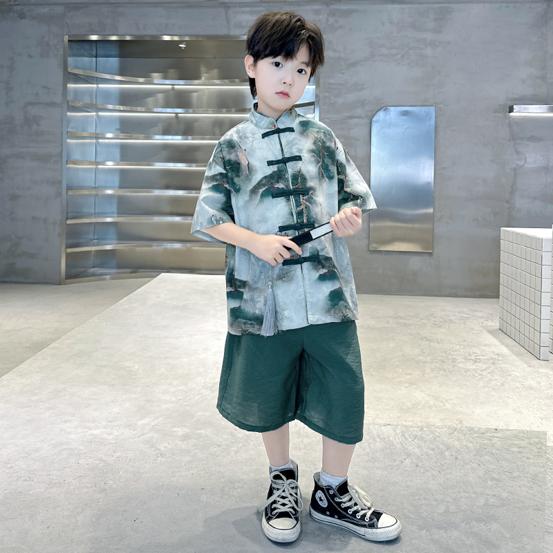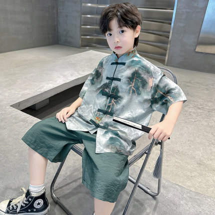 儿童装男童汉服夏装套装2025新款唐装中大童短袖中国风夏季男孩潮