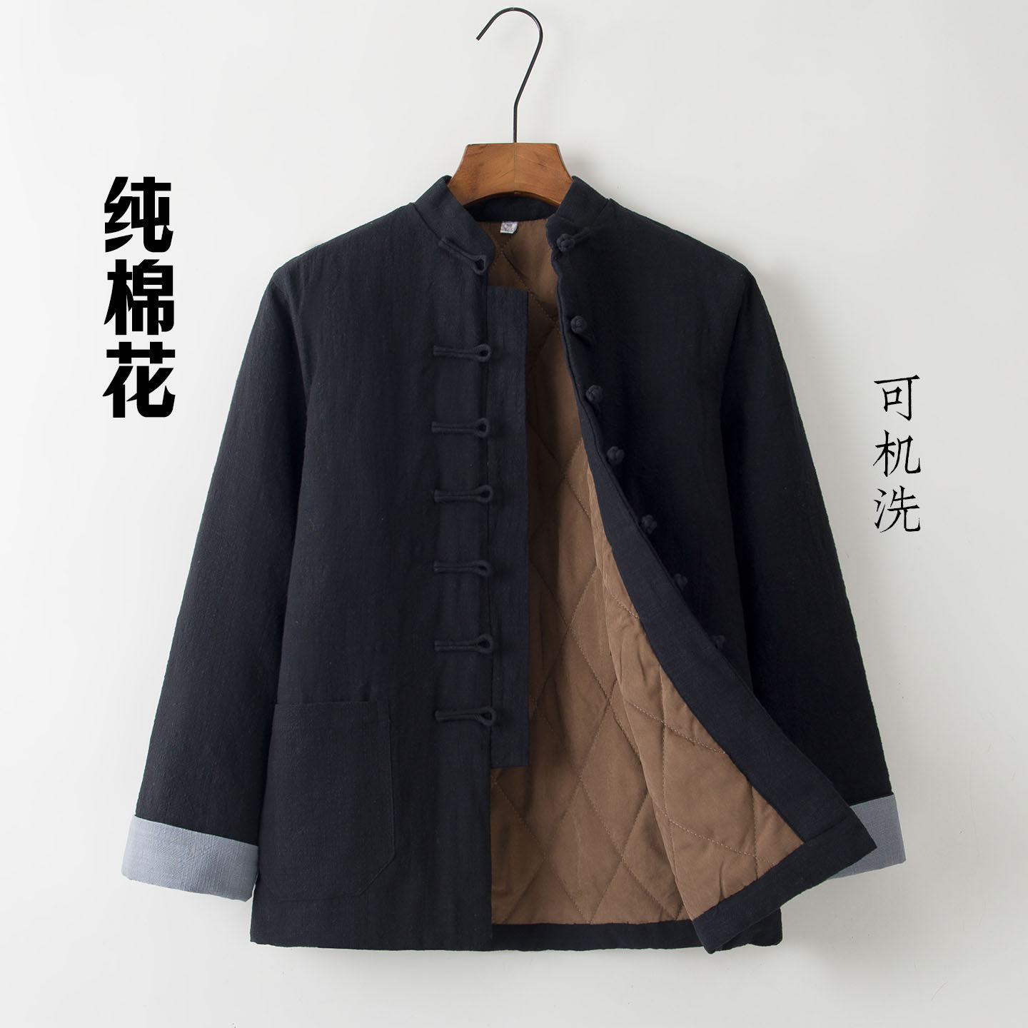 亚麻唐装男士棉袄中国风棉花棉衣中老年棉麻冬装外套加厚复古棉服